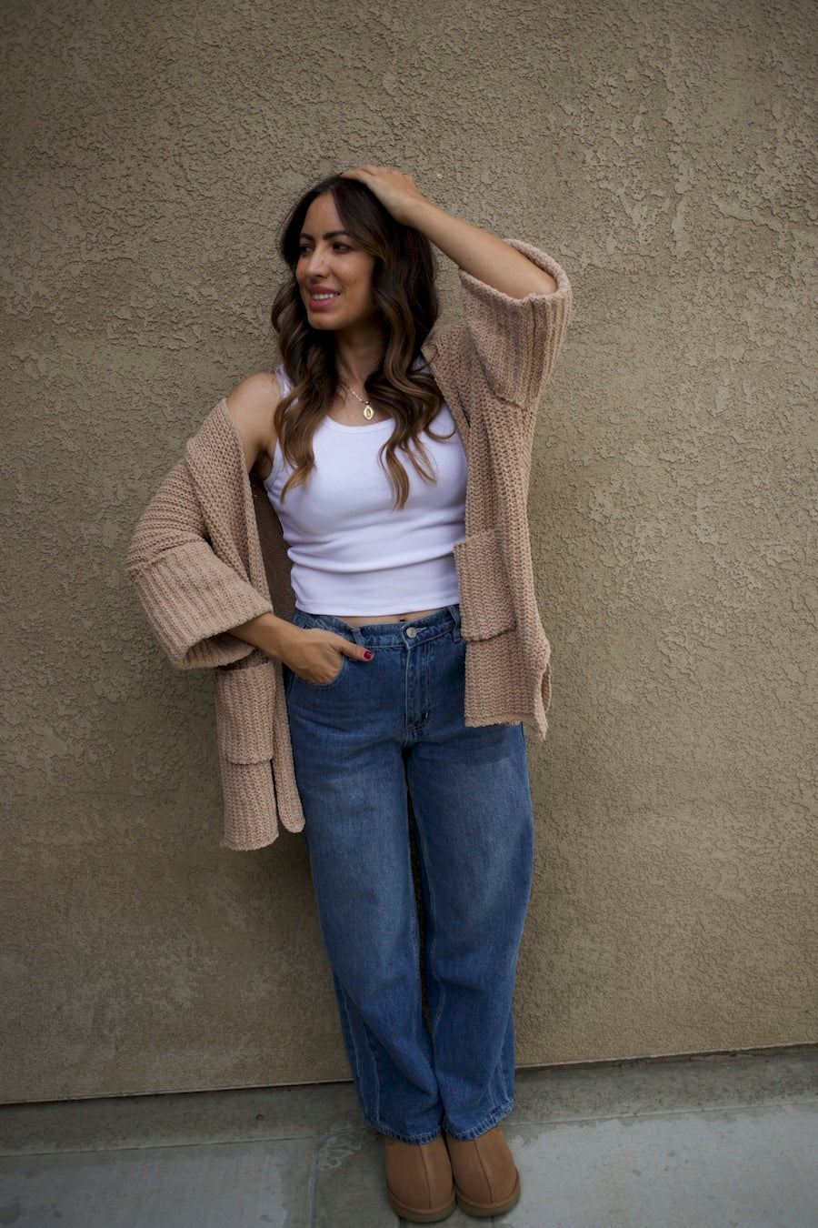 This chenille cardigan features a roomy fit and long sleeves for cozy layering. Its open-front design and handy pockets make it easy to wear and practical for everyday use. Perfect for transitional weather or relaxing indoors, it adds casual style and comfort to any outfit.