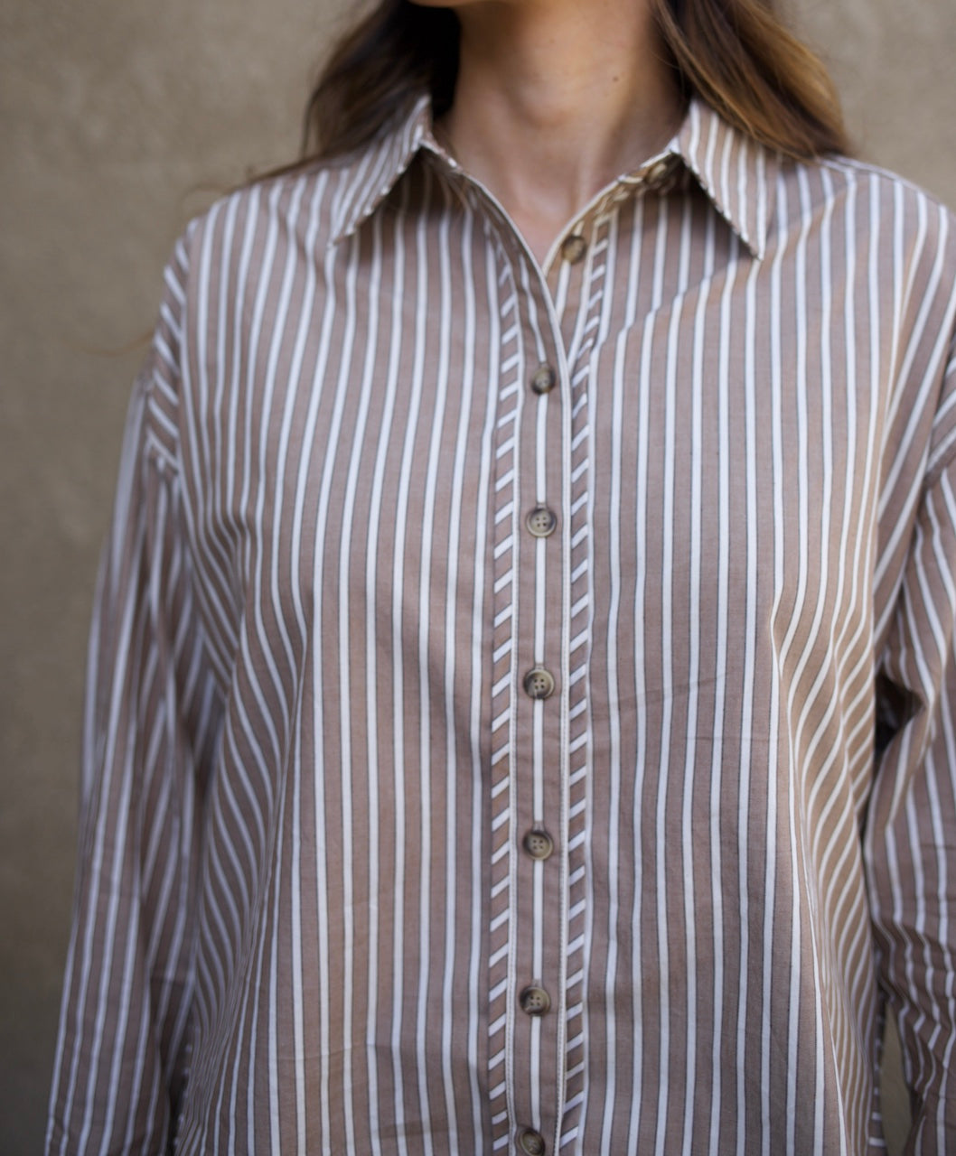 Oversized Brown Striped Button up